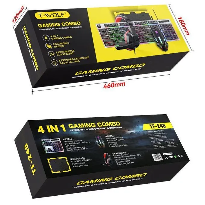 T-WOLF 4 in 1 Gaming Combo - Keyboard, Mouse, Headset, and Mousepad